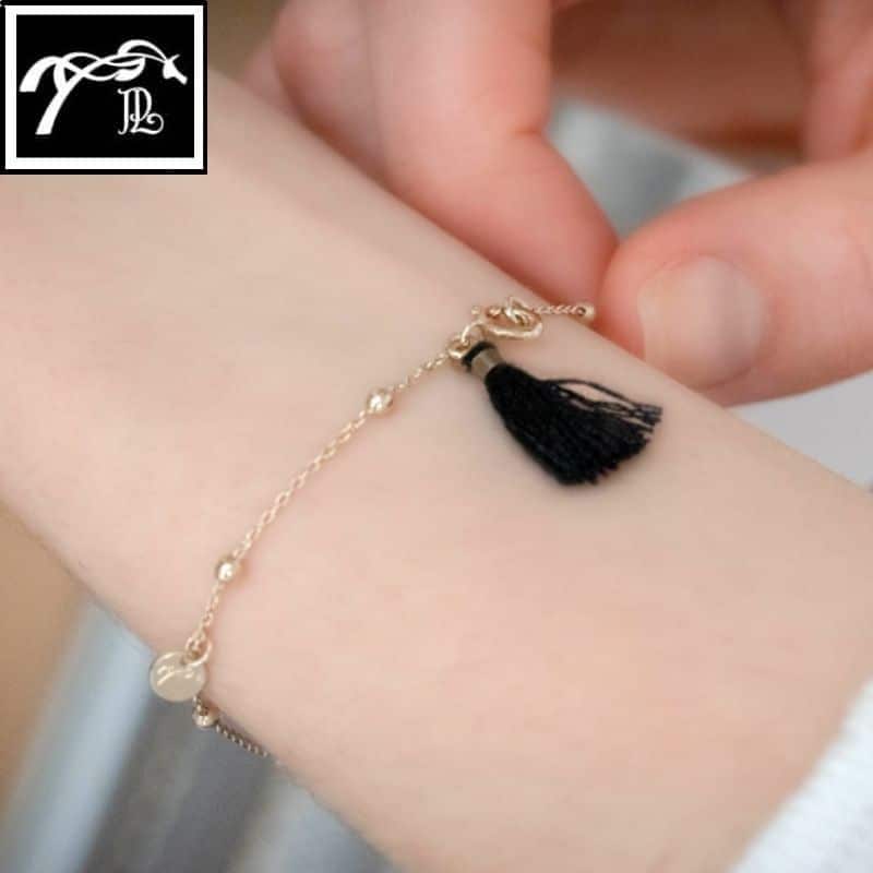 Assorti au collier du même nom. Il est équipé d’un pompom noir sur le fermoir.
