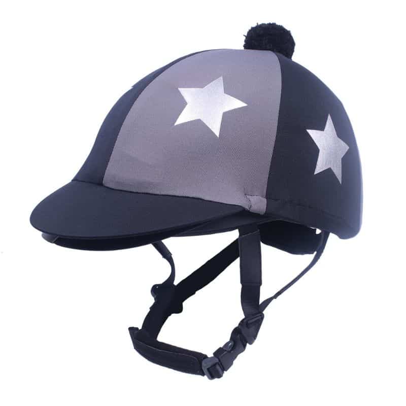 La Toque de Cross Étoile QHP est un couvrecasque avec visière et impression d’étoile, qui peut être utilisé pour des bombes avec ou sans visière.
