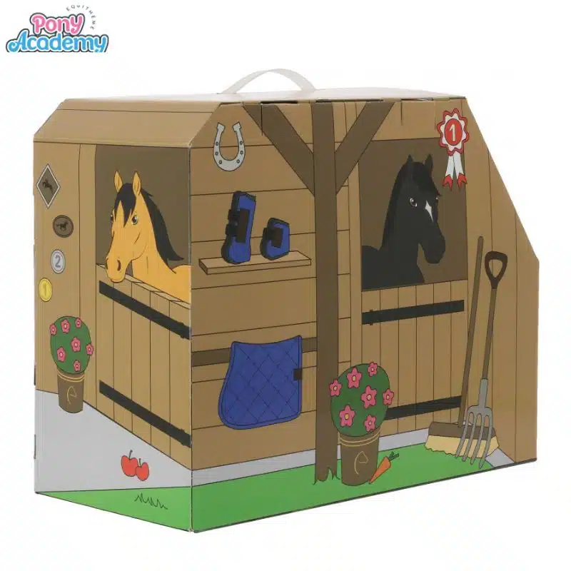 Mais ce n’est pas tout : grâce à la assortis (tapis, bonnets, bandes, couvertures, licols, brides et selles), votre enfant peut habiller et personnaliser Filou pour créer son propre univers équestre.