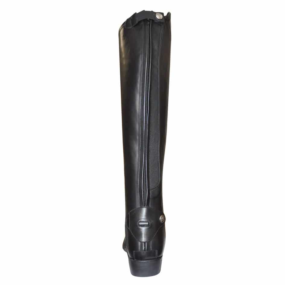 Cuir italien doublé. Lacets élastiques. Rabat en cuir de protection arrière avec pression et taquet d’éperon.