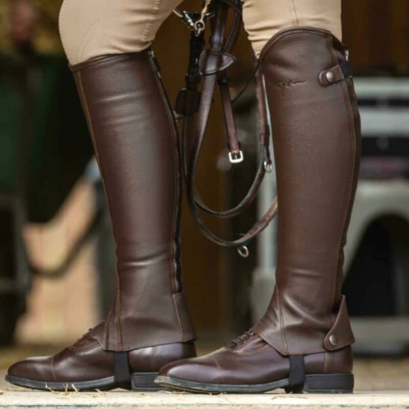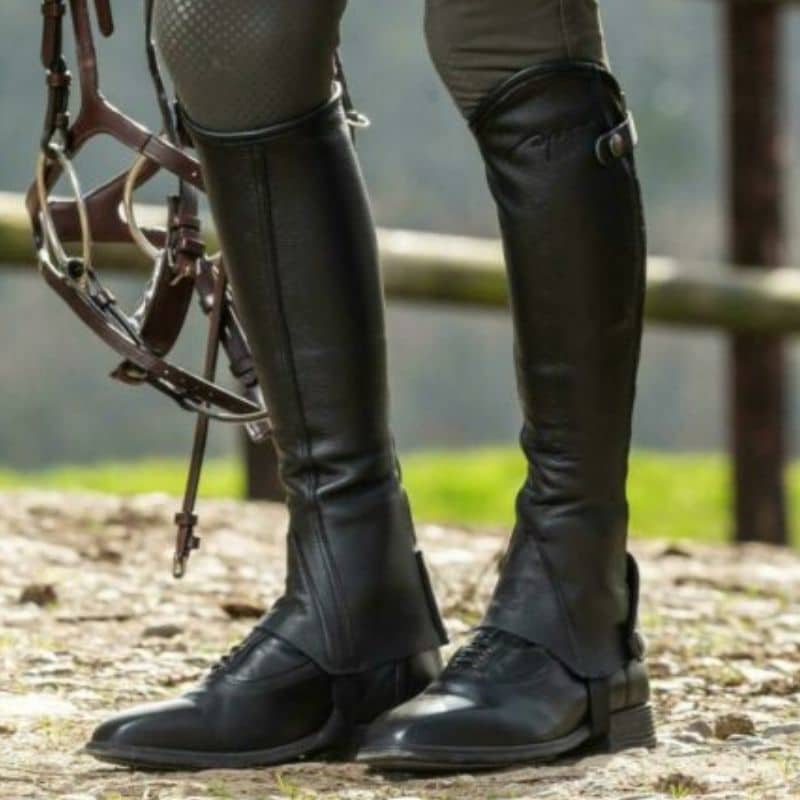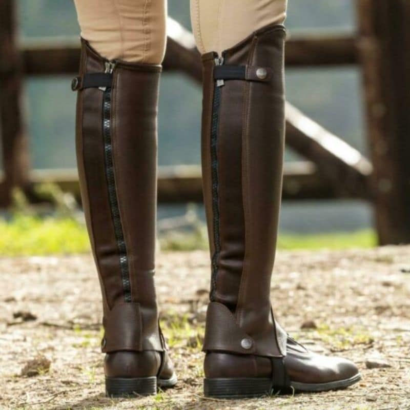 Fabriquées en Belgique avec fermeture éclair YKK en nylon et élastique derrière le mollet, elles sont idéales pour les cavaliers et cavalières souhaitant des mini-chaps confortables, résistantes et durables.