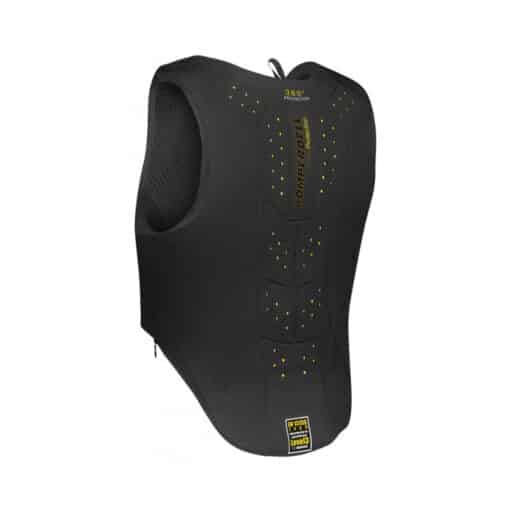 Meilleur niveau de protection pour suivre aussi sur le cross. – Thermofit : Mousses protectrices thermoélastiques sensibles à la chaleur corporelle, la double densité en matériau thermocollant et construction multicouche apportent de la souplesse pour une adaptation parfaite aux courbes du corps. – Respirabilité maximale : Perforation optimale, extérieur en tissu ultra-léger élastique. – Sécurité optimale : Absorbe jusqu’à 97% de la force d’impact. Avec des résultats optimaux pour les forces résiduelles, ces gilets ont dépassé de loin les normes légales les plus strictes. En cas d’accident, le protecteur absorbe l’énergie d’impact, la répartit sur la protection et réduit l’impact au minimum. – Ajustement automatique de la largeur de sangle : Technique de stratification spéciale et à des zones de flexion intelligentes. Les mousses avant et arrière sont reliées latéralement par une bande élastique. Cela permet une flexibilité latérale et règle automatiquement la largeur lors de la fermeture de la dorsale. Grâce à cela, ces dorsales sont parfaitement ajustables en taille. – Facile et pratique : Fermeture à glissière frontale. DÉTAILS : – Protection 360°. – Ajustement de la dorsale en quelques minutes. – Gilet niveau 3 pour les militaires et les cavaliers de cross. – Livré avec une housse de protection pour le transport. Conçu et dessiné en Autriche. Approuvé selon le standard EN 13158:2018 – NIVEAU 3 BETA 3 2018. Lavable en machine à 30°C, suspendre sur cintre pour séchage à l’abri du soleil, pas de sèche-linge.