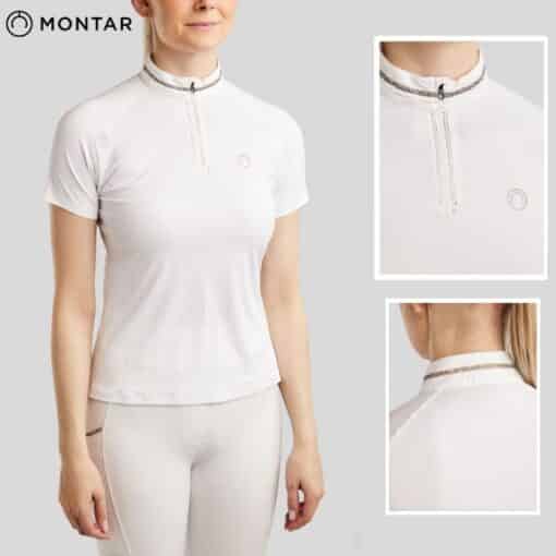 Le Polo de concours à strass MoLila Blanc SS26 Montar associe élégance féminine, technicité et confort pour offrir aux cavalières une silhouette sophistiquée en piste comme à l’entraînement.