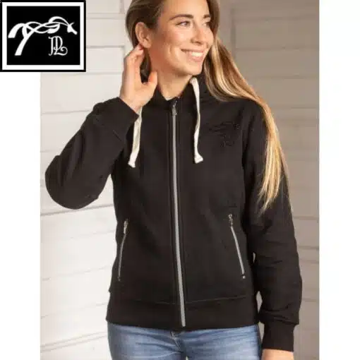 Le Sweat à capuche Stressy Strass Noir Pénélope Store SS26 est un sweat à fermeture zip facile à mettre et à enlever.