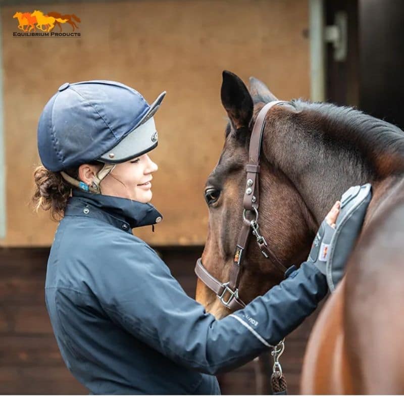 Le Gant de massage chauffant pour cheval ou poney SANS FIL d’Equilibrium “Massage Mitt”, relaxe et de rétablit le cheval avec des résultats visibles.