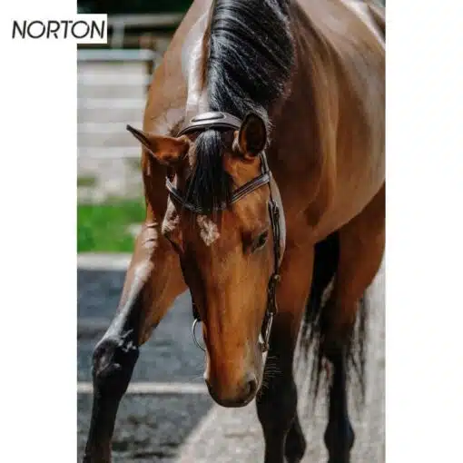 Sans muserolle et sans sous gorge, le Bridon anatomique Freedom NORTON PRO permet d’éliminer toute pression ou contact inutiles sur les parties sensibles de la tête du cheval.