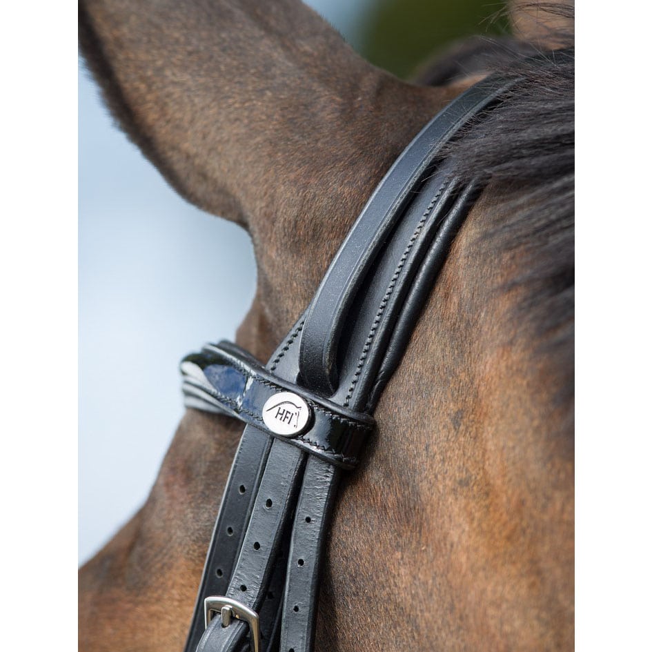 Bride de dressage en cuir de buffle qualité supérieur, bouclerie laiton chromé
