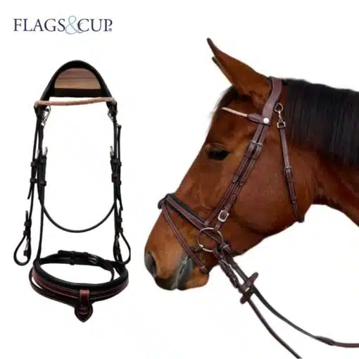Flags and Cup – Bridon Genève Havane Rose Gold avec muserolle combinée.