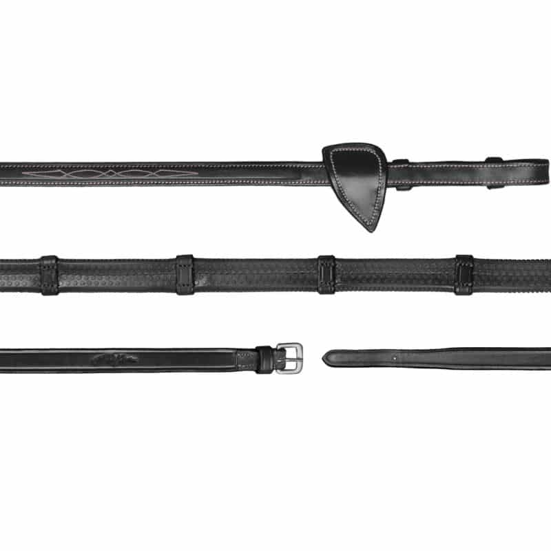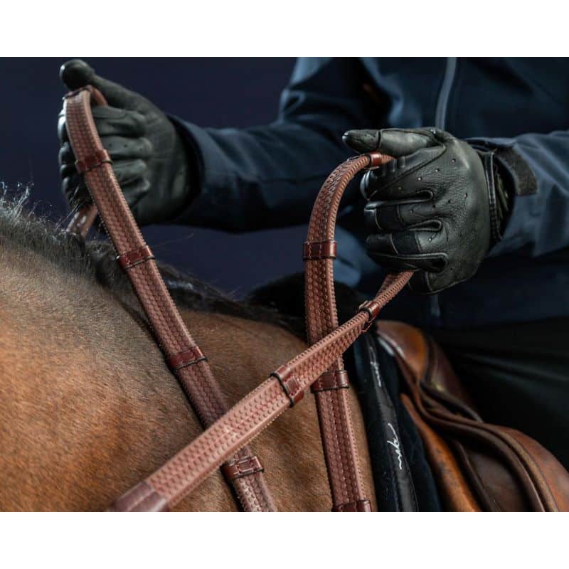 Les Rênes Cuir/Caoutchouc 1/2 (13 mm) avec 7 arrêtoirs Dy’on HUNTER US COLLECTION sont compatibles avec tous vos bridons et tout particulièrement avec ceux de la Hunter Collection
