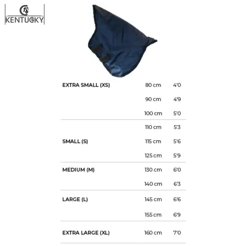 Guide des tailles pour les couvre-cous Kentucky Horsewear :