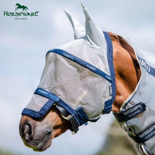 Masque Anti-Mouches Rambo Flymask HORSEWARE est un masque anti-mouches au design amélioré pour une protection efficace contre les UV et un confort optimal des yeux.