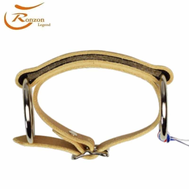 Mors 2 Anneaux Cuir Plat avec gourmette RONZON LEGEND est confectionné en cuir, renforcé avec une bande intérieure de polypropylène et de feutre 100% laine est doux, naturel, confortable, beaucoup moins agressif que les mors traditionnels en métal. Le cuir utilisé est issu d’un tannage végétal, sans produits chimiques. Les tranches sont biseautées, pour plus de confort pour la bouche de votre cheval. Il convient ainsi à tous les chevaux, tout particulièrement les sujets sensibles. Les anneaux sont en bronze nickelé.