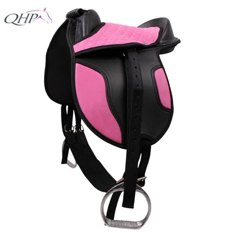 Elle est vendue complète : elle est livrée avec sangle, étrivières et d’étriers, poignée sur le devant et anneau de croupière.