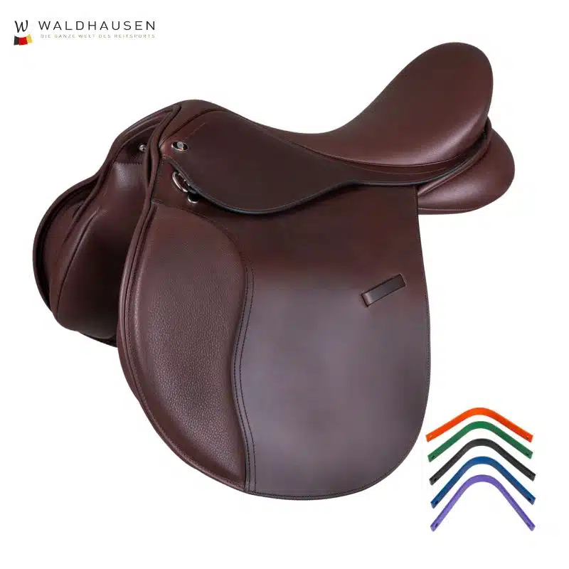 La Selle d’équitation mixte Comfort en cuir Waldhausen est fournie avec une arcade d’arçon verte (32cm) pour la taille 17″5/44cm.