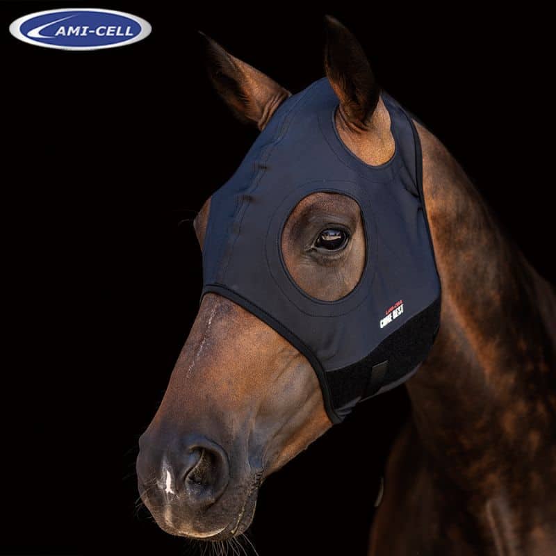 Le Masque COME BEST Titanium sans oreilles Lamicell aide le cheval à maintenir sa concentration, réduire la fatigue et la douleur musculaire, réduire la tension et maintenir son énergie.