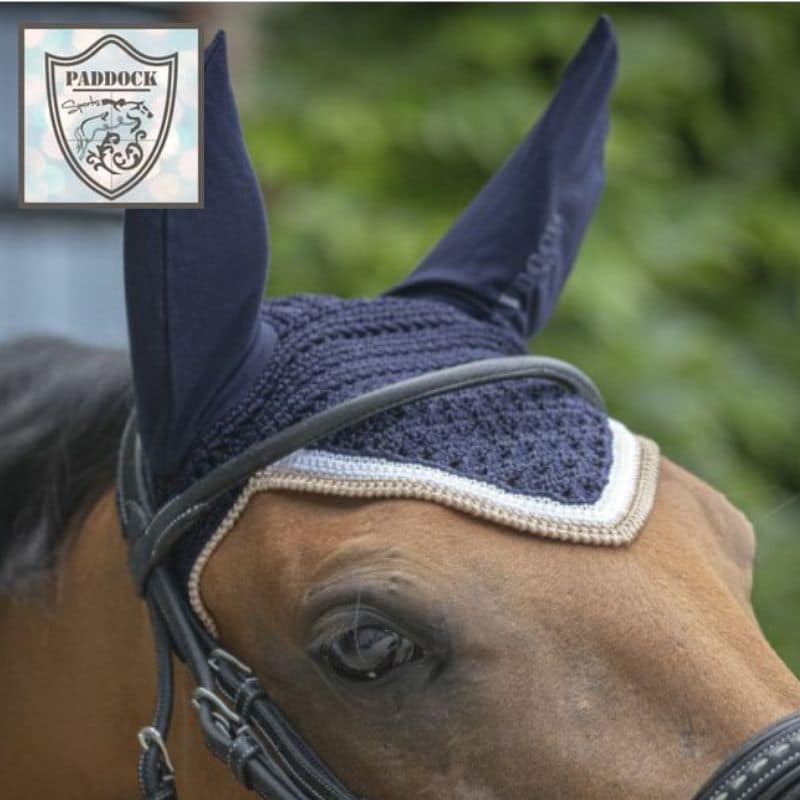 Coloris Marine/Blanc/Or, bonnet anti-mouches en polyester doux, il épouse parfaitement la forme de la tête et est très confortable grâce à ses oreilles en tissu stetch.