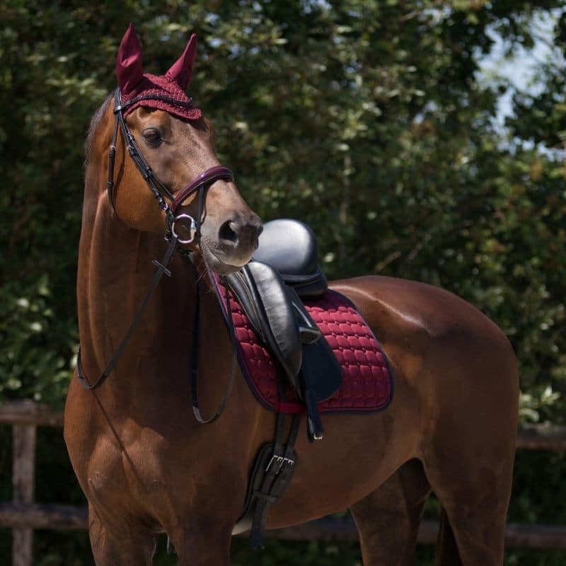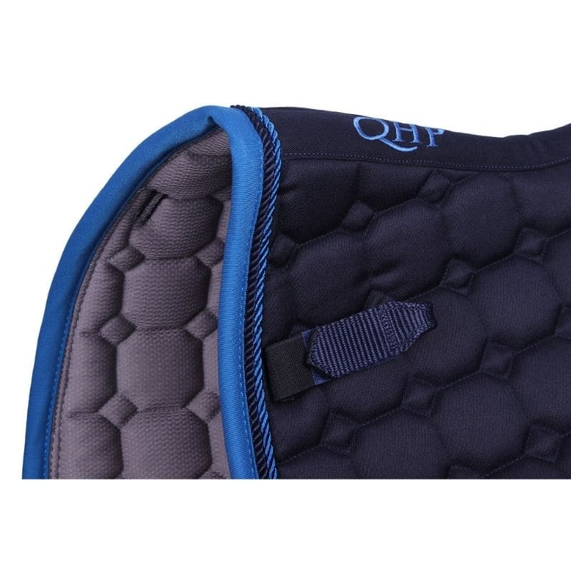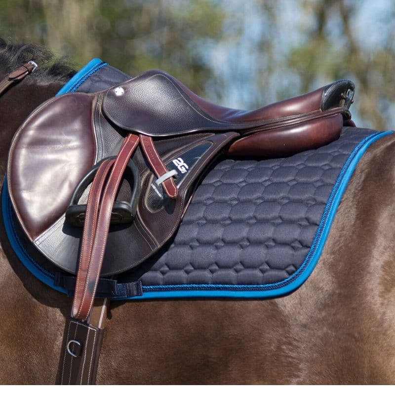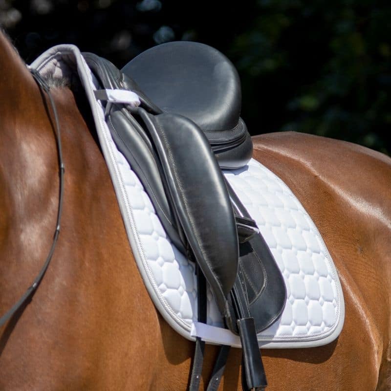 Ce tapis de selle est équipé de passant de sangle sui s’ouvre par velcro et qui assurent le maintien du tapis.