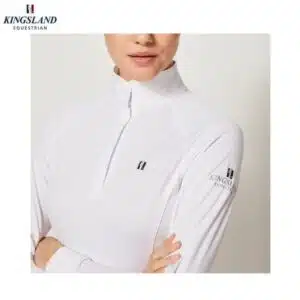 Le Polo de concours Classic blanc Kingsland est doté d’une patte de boutonnage tissée au niveau du col et des poignets, combinée à des boutons pression cachés très pratiques.