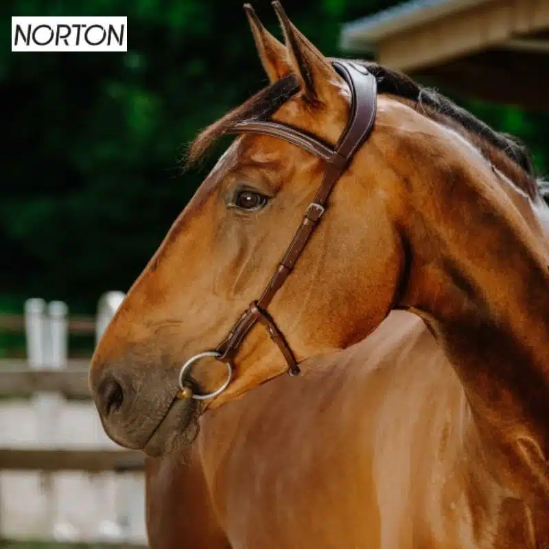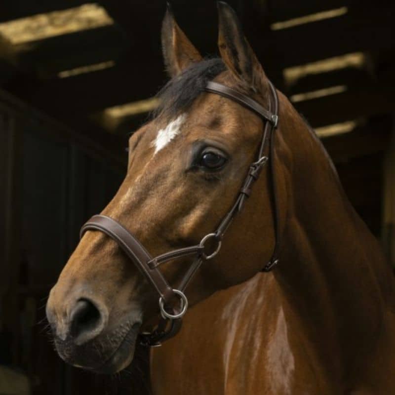 Side-pull en cuir de buffle avec muserolle et frontal doublés en cuir vachette.