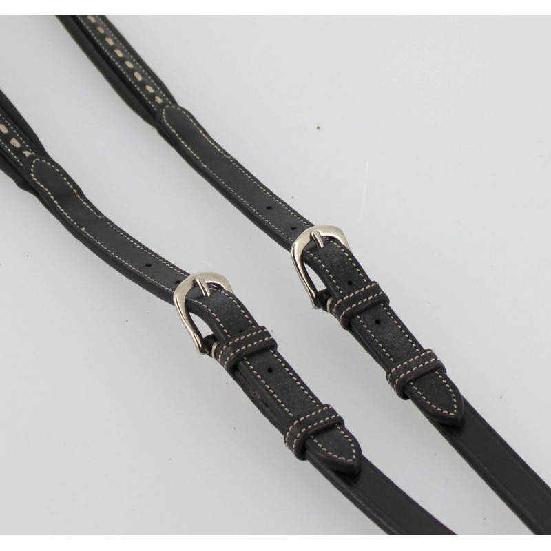 Collier de martingale doublé qu’un cuir vachette souple et surmonté d’une couture point sellier décorative. Equipé d’un élastique sur le dessus recouvert d’un mouton synthétique.