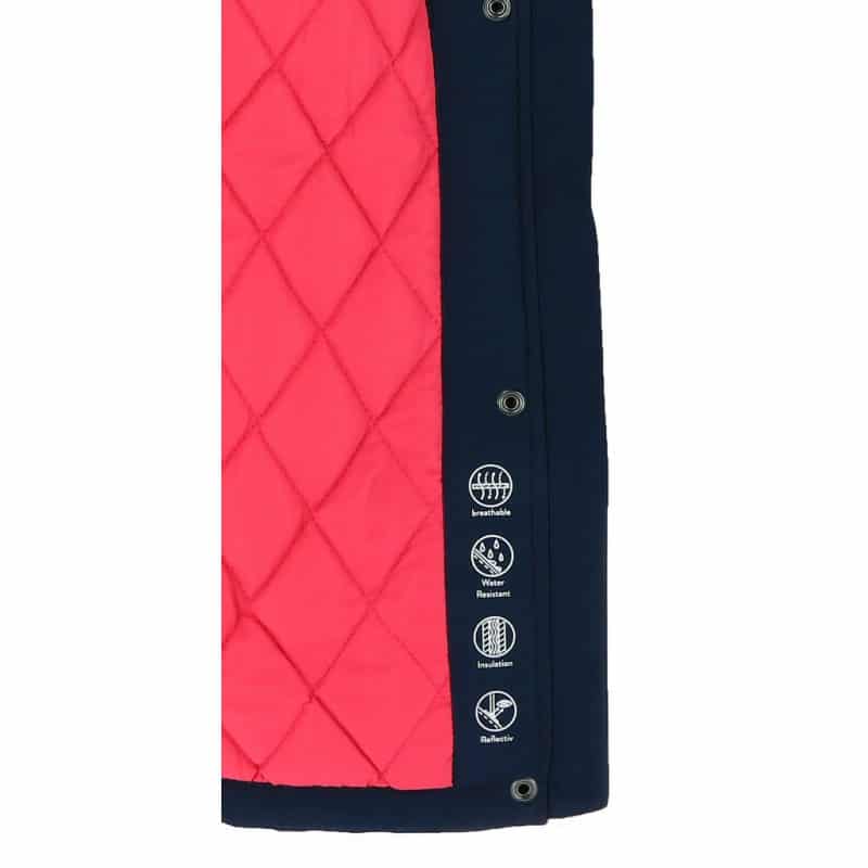 Pour limiter les entrées d’air froid et protéger du vent, le bas des manches est resserré par un manchon en bords-côtes et le zip de la fermeture est renforcé par une patte en dessous. Très tendance, la Parka Equi-Kids Praline possède une capuche ouatinée avec une bordure en fausse fourrure amovible. Pour plus de sécurité, des marquages en impression réfléchissante sont visibles la nuit sur l’avant et dans le dos.