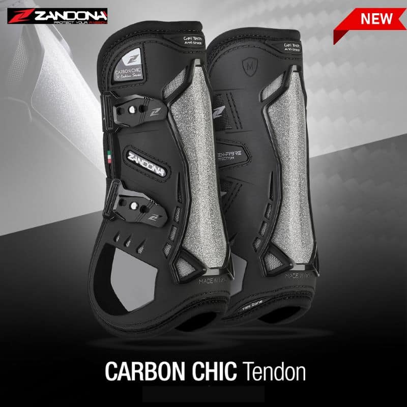 Les Guêtres CARBON CHIC FETLOCK ZANDONA ont un insert spécial en fibre de carbone, breveté pour la première fois en version pailletée.