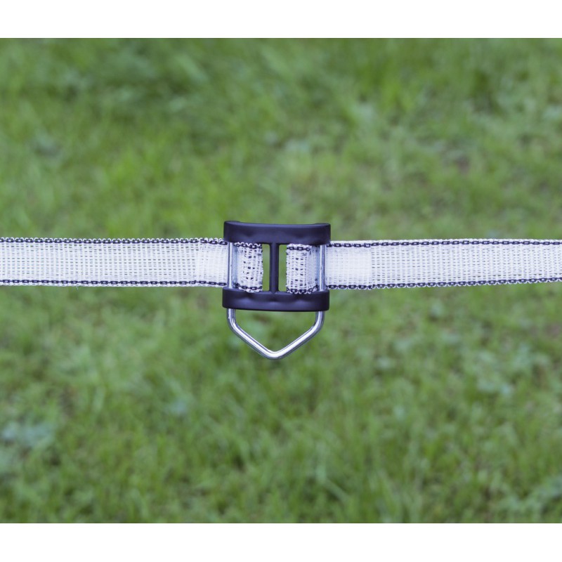 Les raccords pour ruban sont faciles à utiliser. Ce raccord convient pour tous les rubans de clôtures électriques standards.