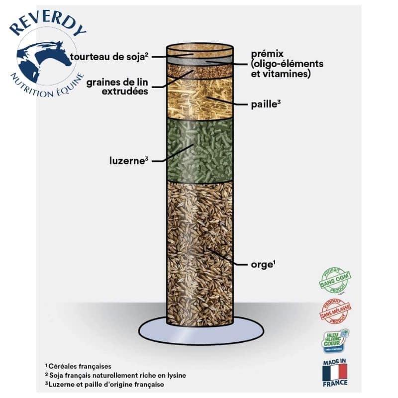 - 1 mesure REVERDY (2L) = 1,4 kg pour un cheval adulte de 500 kg