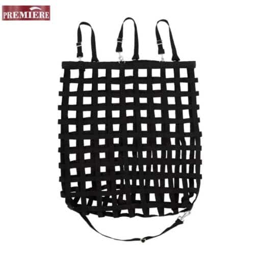 Le Filet à foin Slowfeeder 811210 mailles 5 x 5 cm Premiere est non seulement super robuste, mais aussi facile à accrocher grâce aux boucles aux extrémités avec les mousquetons.
