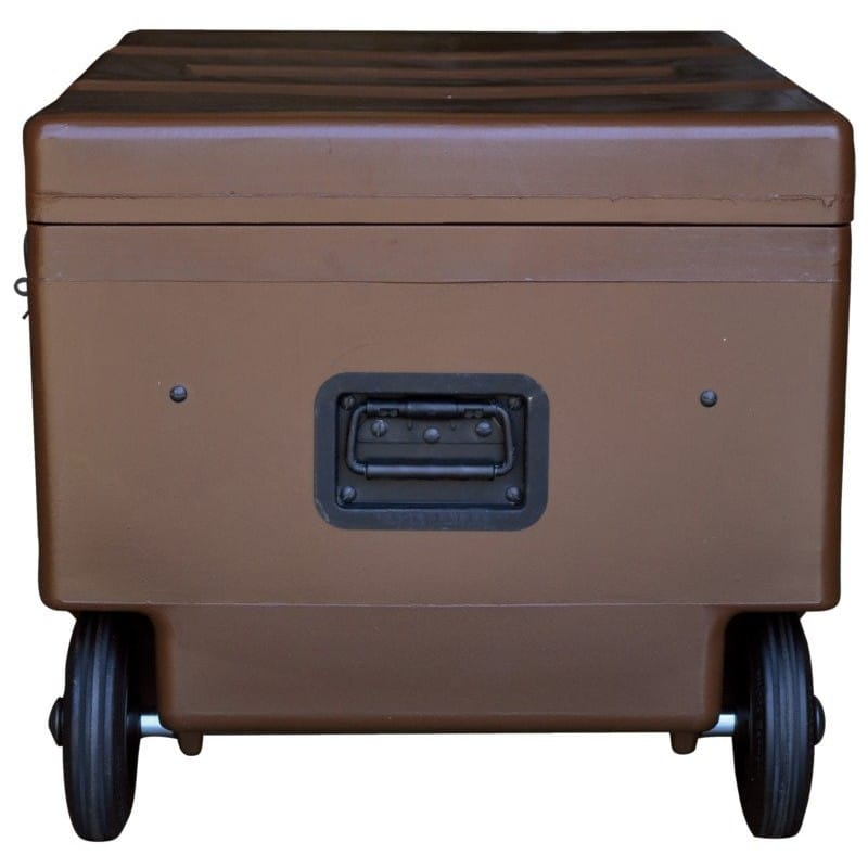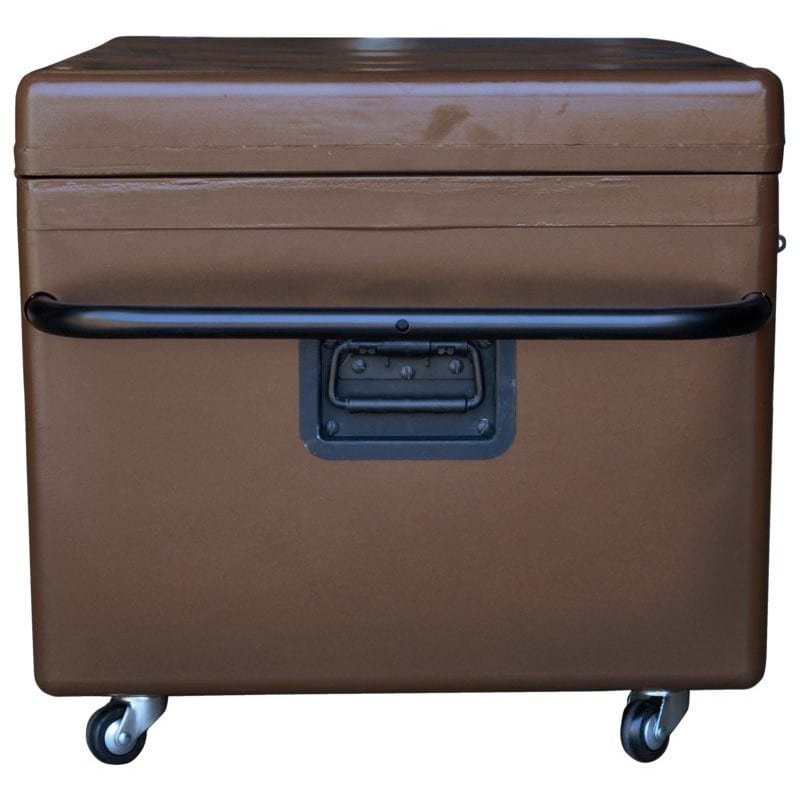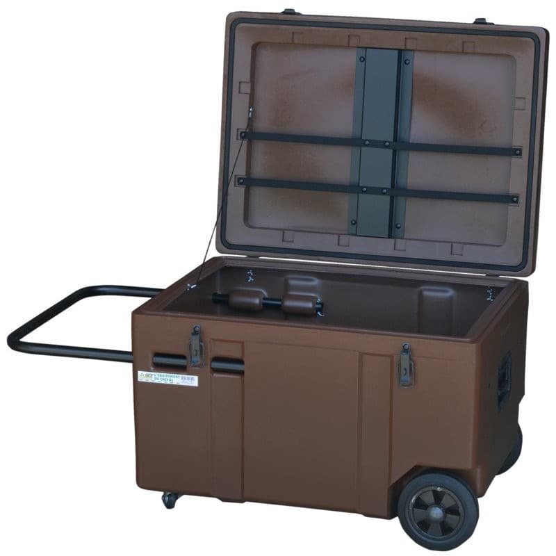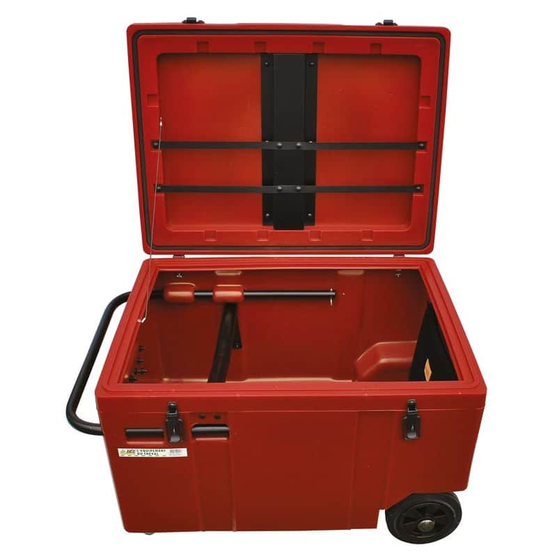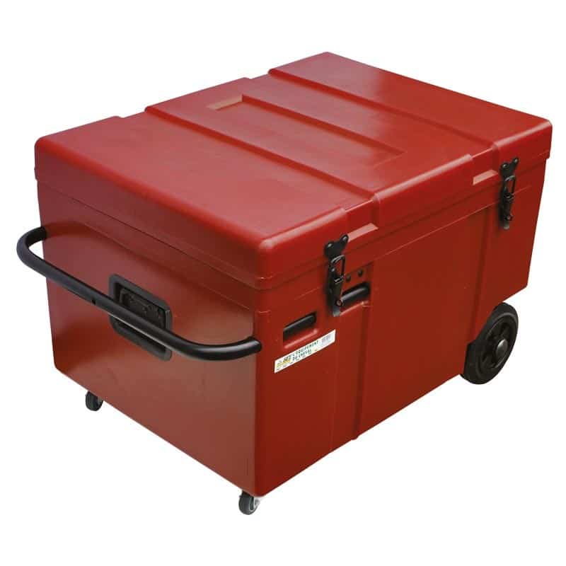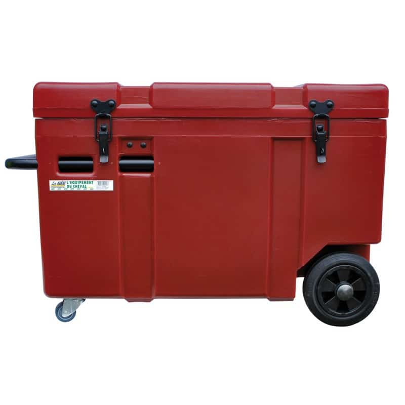 Facilement maniable grâce aux roues pivotantes à l’avant, son couvercle est pourvu d’un joint afin d’offrir une étanchéité complète et renforcé par un oméga métallique.