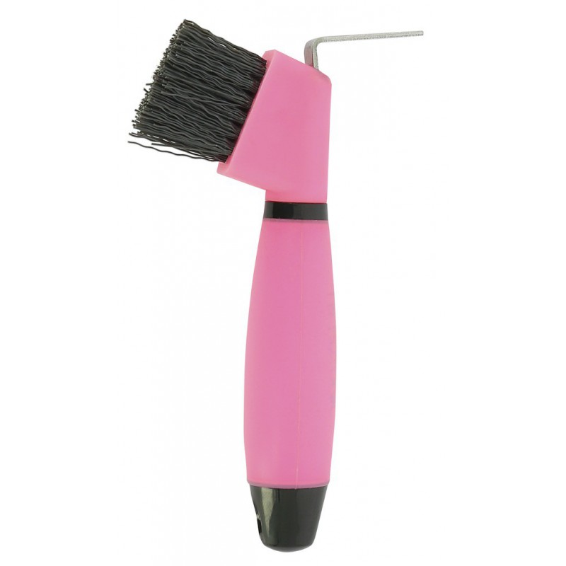 Cure-pied brosse en polypropylène. Poignée en ABS recouvert de gel à mémoire de forme. Culot perforé en ABS plaqué aluminium.