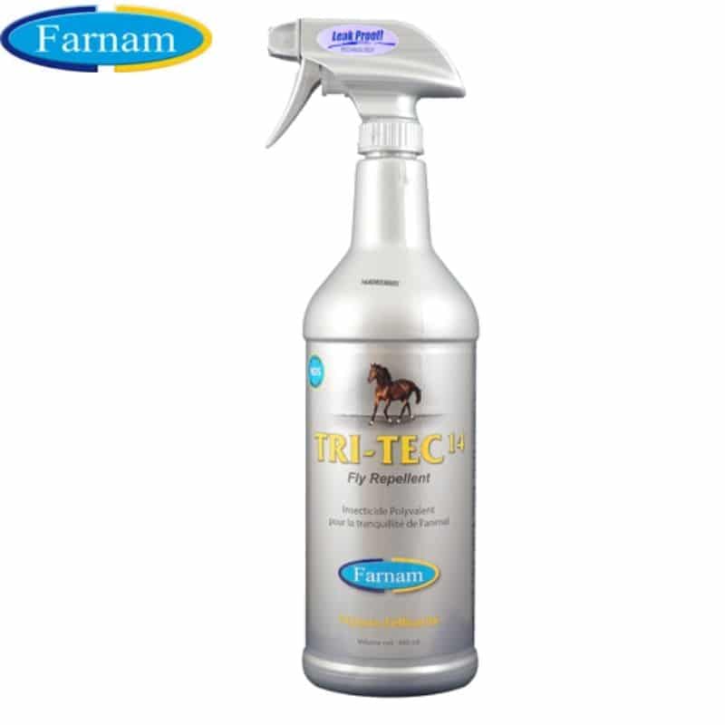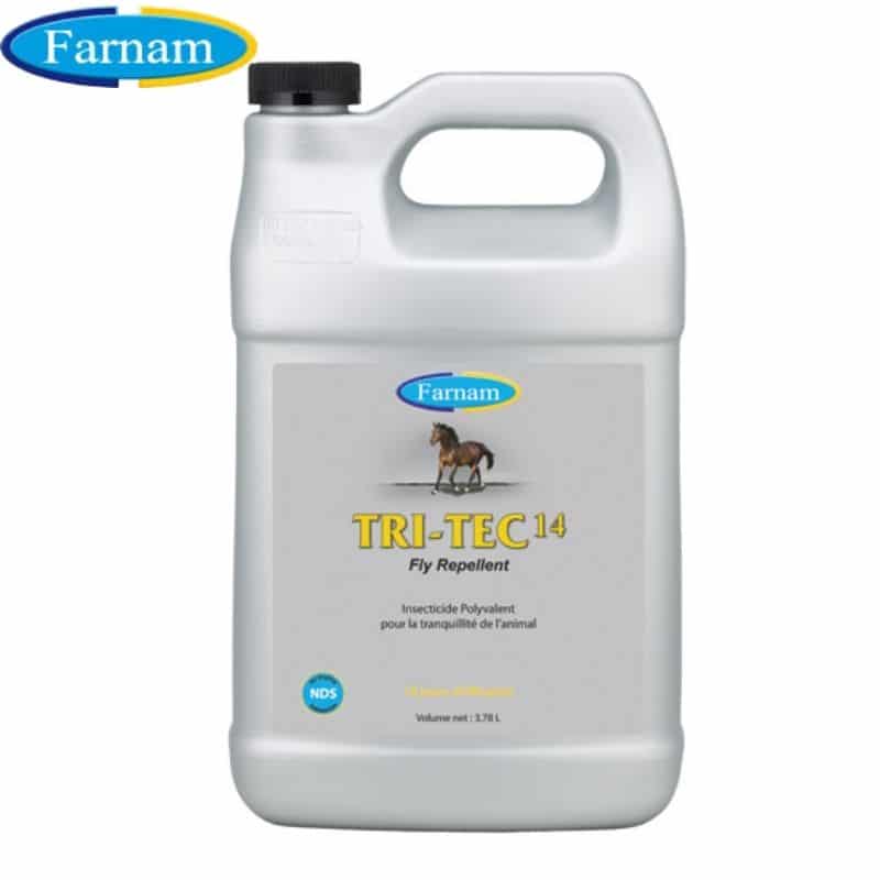 TRI-TEC 14 est un insecticide prêt à l’emploi, contre mouches, taons, tiques, moustiques et autres insectes rencontrés dans l’environnement du cheval.