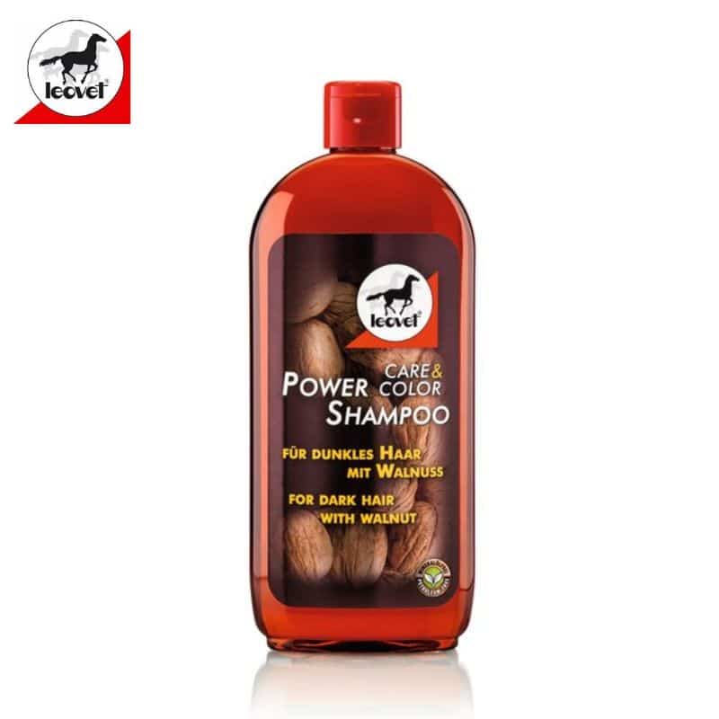 Pour les chevaux à robes foncées, bai ou bai brun, le Shamping Power Noix Leovet, aux extraits de noix nettoie le pelage, la crinière et la queue en accentuant la couleur profonde de votre cheval.